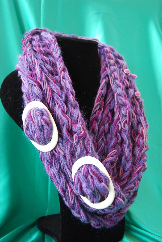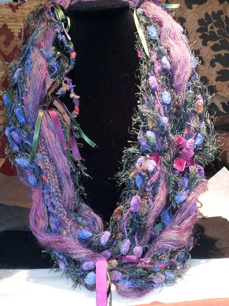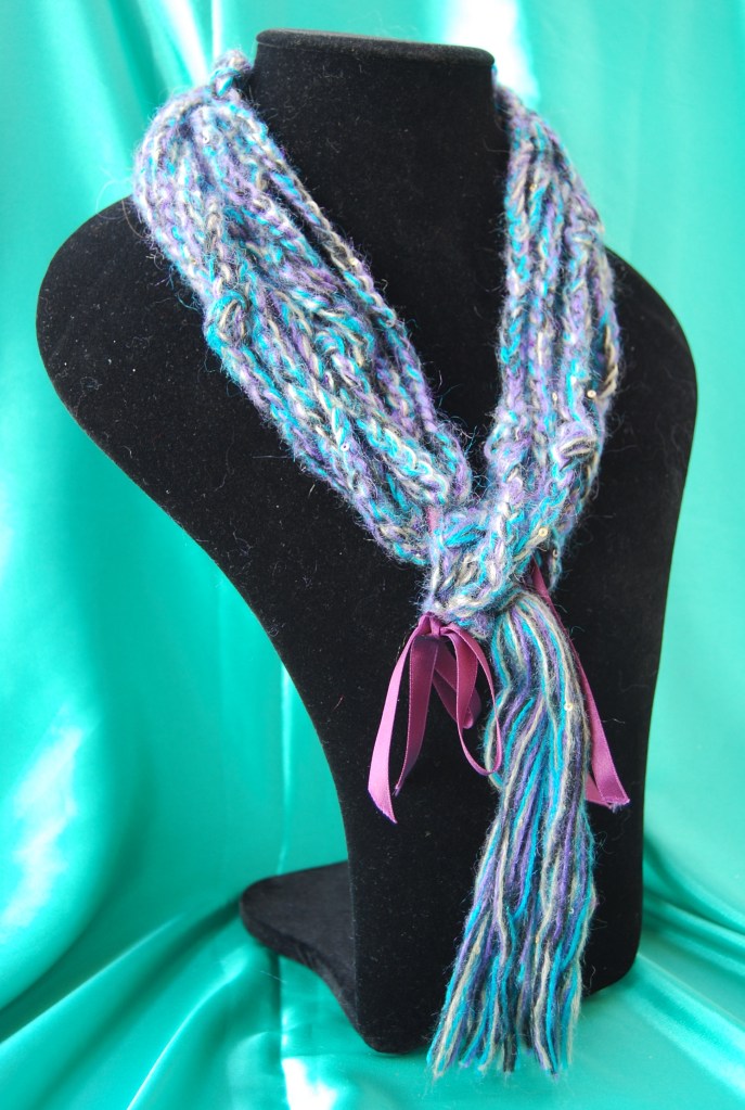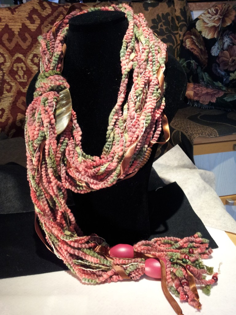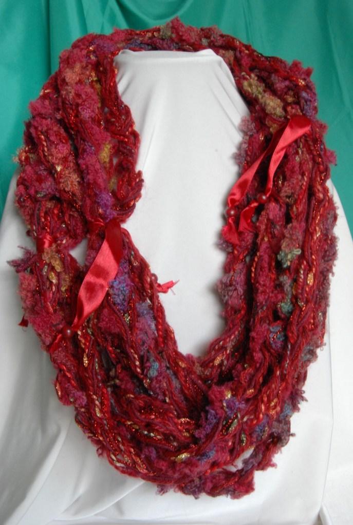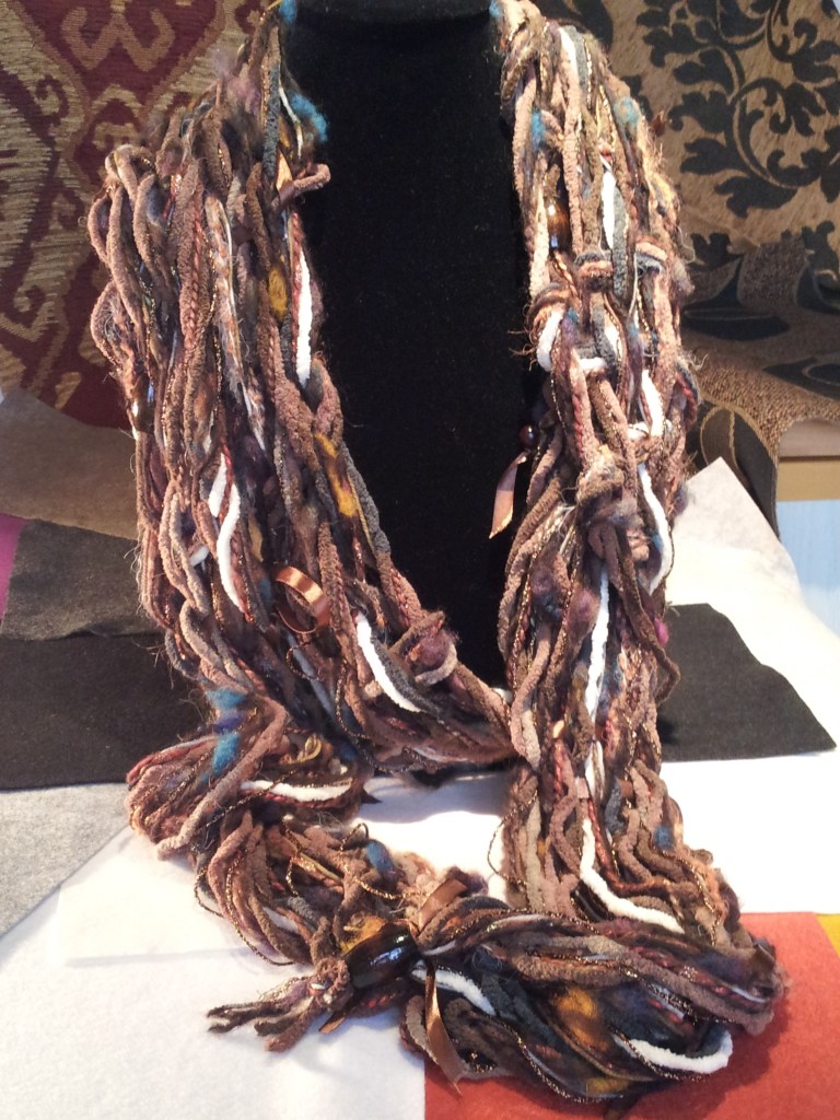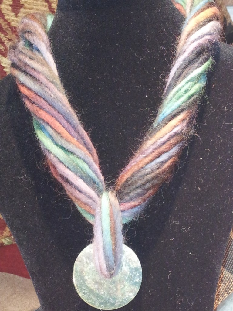 Sciarpa CAMELIA: vari filati lana Mondial e Filatura di Crosa stretti da nastri in raso e velluto. Lunghezza cm 220.Sciarpa CAREY: vari filati Mondial lavorati a uncinetto in tre grossi cordoni finiti con anelli in metallo. Lunghezza cm 127.Sciarpa CLELIA: vari filati in lana Mondial e Filatura di Crosa. Rifinita all’estremità con lavorazione all’uncinetto su cui è fissato un grosso bottone in ceramica.Sciarpa COSTANZA: scaldacollo vari filati in lana Mondial e Filatura di Crosa. Chiusura in legno.Sciarpa CRYSTAL: scaldacollo in lana formata da un unico gomitolo di lana stesa e lavorata in modo da creare due estremi rifiniti ad uncinetto. Chiusura in ceramica. Lunghezza cm 75.Sciarpa CORA: Scaldacollo formato da un unico gomitolo steso finito alle estremità ad uncinetto Chiusura con grosso bottone in resina. Lunghezza cm 75.Sciarpa CAROLA: Scaldacollo in filato di lana lavorata in un unico cordone ad uncinetto. Chiusura con grosso bottone in resina. Perle in legno rifiniscono la coda sul davanti. Lunghezza cm 74.Sciarpa CARRIE: Scaldacollo in vari filati di lana Mondial e Filatura di Crosa. Chiusura con grosso bottone rivestito in velluto. Perle in legno rifiniscono la coda davanti. Lunghezza cm 106.Sciarpa CASSANDRA: Scaldacollo vari filati in lana Mondial e Filatura di Crosa. Finita con perle in legno, anello in metallo. Lunghezza cm 90.Sciarpa CLARISSE: in vari filati in lana Mondial e Filatura di Crosa, lavorati a treccia chiusi con nastri e perle in legno. Lunghezza cm 200.Sciarpa CORINNE: in lana Merinos, nastri e filato in lamé. Chiusura con grosso anello ellittico passante in osso naturale. All’estremità rifinita con cilindri e perle in legno. Lunghezza cm 175.Sciarpa CELINE: in lana Mondial e ciniglia, nastri in velluto e finali in metallo. Lunghezza cm 170.Sciarpa CHLOE: Lunga sciarpa in vari filati in lana lavorati in un unico cordone ad uncinetto fissato a telaio, inserti ad anello in metallo. Lunghezza cm 360.Sciarpa CHARLINE: Scaldacollo in lana realizzata con un unico cordone lavorato ad uncinetto fissato da nastro in raso. Filatura di Crosa. Lunghezza cm 180Sciarpa CLELIA: in lana lavorata in un’unica treccia. Chiusura con passanti in osso naturale. Lunghezza cm 180.Sciarpa CINDY: vari filati in lana Mondial, nastri e perle in vetro sfaccettato. Lunghezza cm 270.Sciarpa CECILIA: vari filati in lana Mondial, rifinita con nastri in raso e perle in vetro sfaccettato.Sciarpa CLORETTE: vari filati in lana e ciniglia, tessuti da nastri finiti da perle e cilindri in legno. Lunghezza cm 320.Sciarpa CHRISTELLE: vari filati in lana lavorati in un unico cordone ad uncinetto, fissato a telaio. Nastri e un grosso bottone in raso permettono di chiuderla. Perle di legno rifiniscono la coda. Lunghezza cm 170.Sciarpa CLAUDINE: vari filati in lana Mondial e Filatura di Crosa e lurex. Lunghezza cm 170.Sciarpa CINZIA: vari filati in lana Mondial e Filatura di Crosa, inserti in metalloCollana SWAMI: in lana, ciondolo in pietraCollana MIREA: in lana. Chiusura in legno e ceramicaCollana MICOL: in lana. Ciondolo in pietraCollana MIRIAM: in lana. Inserti in bronzoCollana SOFIA: in vari filati in lana con anelli in legno